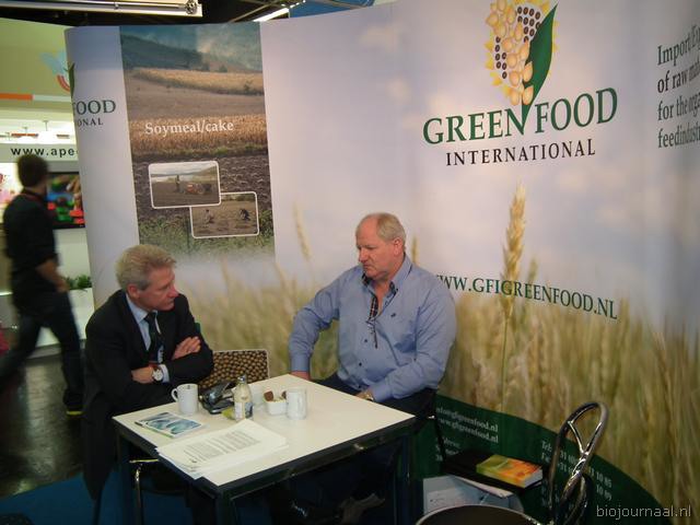 Aalt van de Kraats van Green Food International BV (rechts) in overleg met Jan Idzenga van Peterson Control Union.