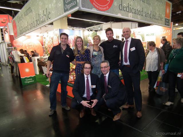 In hal 7 viel vooral de combinatiestand van Green Organics, De Bolster, Rootz en BioBandits op. Op deze foto: Frank Vosselman en Annemarie Kruize van De Bolster, Deborah Post van Rootz, Hans de Boer van BioBandits, Gerard de Pee van Green Organics. En de onderste rij: Robbert Blok en Jan Groen van Green Organics.