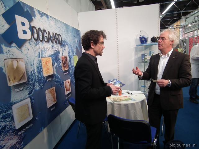 "Jan Beekhuis en Emile Vos vertegenwoordigden Bakkerij van Diermen uit Bunschoten voor het eerst op de BioFach. "We krijgen erg leuke reacties op onze slagroomsoesjes", geeft Jan aan."