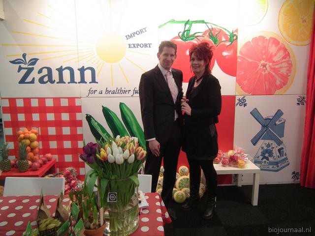 Ariza stond ook dit jaar weer met haar groente- en fruitgrondstoffen op de BioFach. Op de foto Marian Lammerts en Ronald van Marlen.