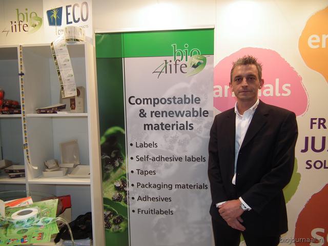 Arjan Klapwijk van Bio4Life BV. Hij produceert onder meer het composteerbare fruitlabel dat Eosta gebruikt.