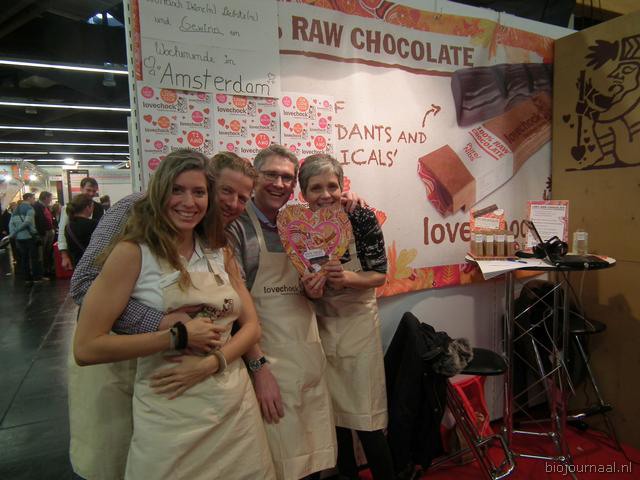 Natuurlijk kon een speciale Valentijnsactie niet uitblijven in de stand van Lovechock. Bezoekers van de stand konden op de foto met dit Lovechockhart. De foto's werden op Facebook geplaatst. Deelnemers konden een weekendje Amsterdam winnen. Viviane, Harald Sorst, Ernesto Kerkhof en Ellen Moons poseren voor Biojournaal.