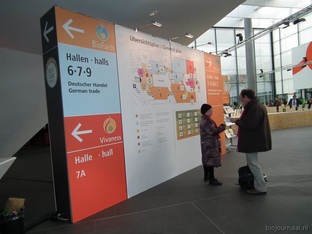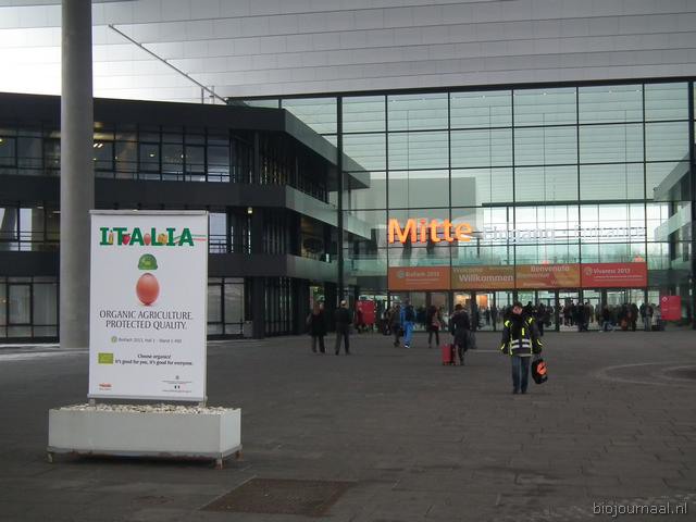 De Mitte-ingang van de BioFach, woensdagochtend net voor de start van de vakbeurs.