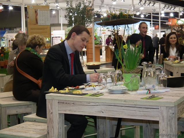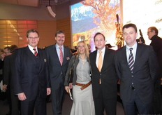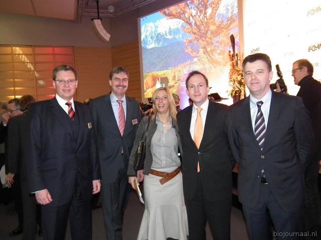 Roland Fleck en Peter Ottmann (directeuren BioFach), met Ron van Arnhem en Rob Zaagman van het ministerie van Buitenlandse Zaken. In het midden Jacqueline Poppe van Beech Business Promotion. Zij was wederom de contactpersoon van de Nürnberg Messe voor de Nederlandse standhouders.