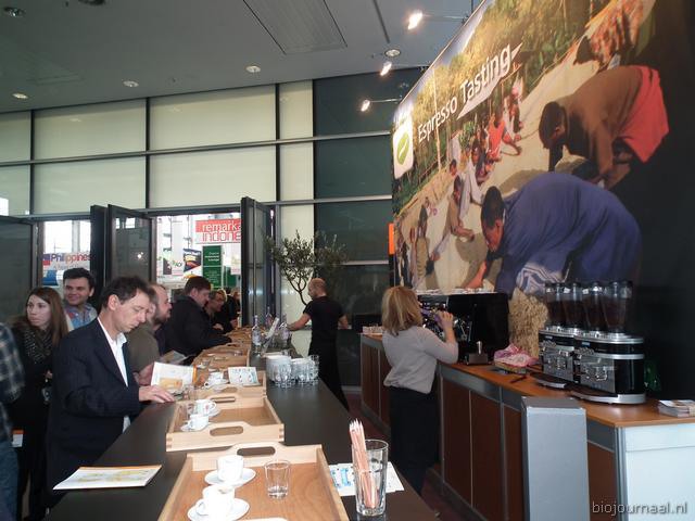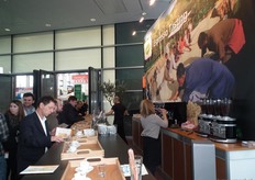 Bij de ingang van Hal A4 konden bezoekers net als vorig jaar koffie proeven. Hier was het eigenlijk constant erg druk.