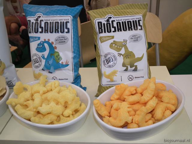 De BioSaurus-chips uit Slowakije is in twee smaken verkrijgbaar: zout en kaas. Beide varianten zijn overigens glutenvrij.