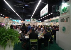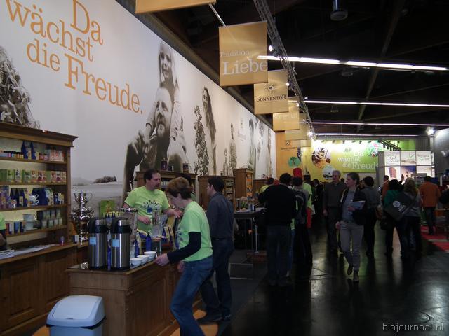 Sonnentor was weer zeer prominent aanwezig in hal 7. De stand loopt door tot aan de achterste wand.