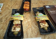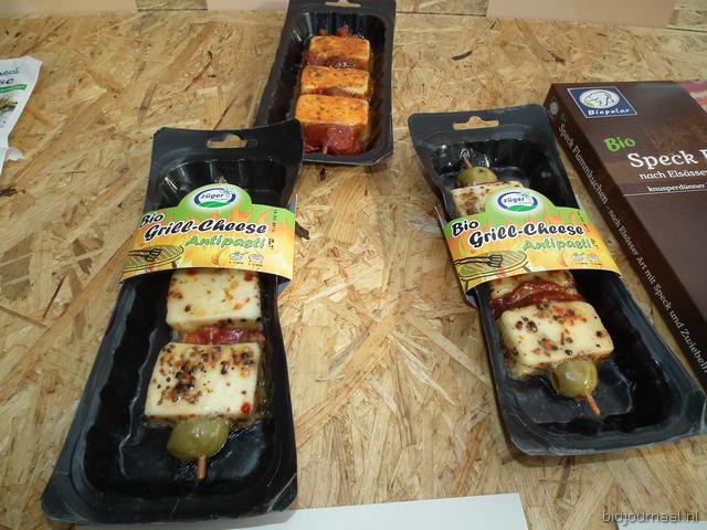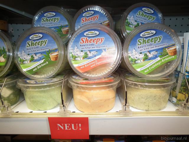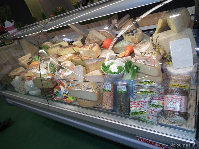 In de koelingen lagen ook Nederlandse biologische kazen. Op de voorgrond bijvoorbeeld de rollen van Hekking Kaas.