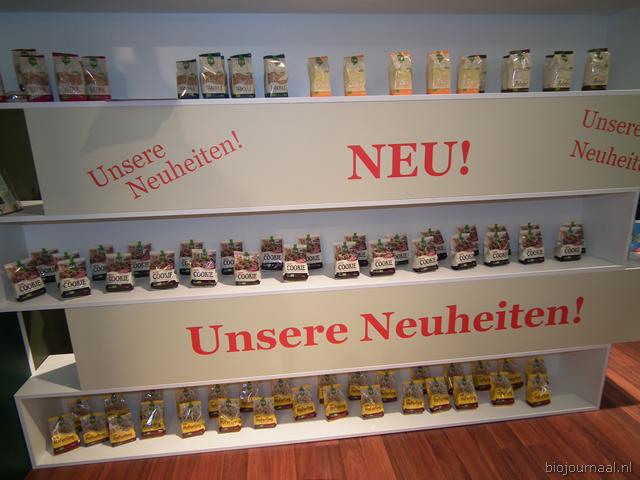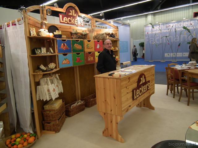 Lecker's heeft allerlei bakproducten bij zich om aan het publiek op de BioFach te tonen.