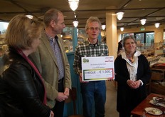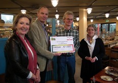 Jan Willem Erisman met de cheque. Hij gaf aan heel vereerd te zijn door het gebaar van Rudi en Astrid.