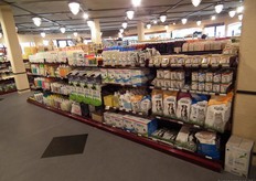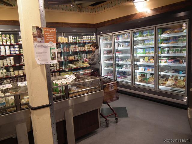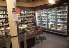Koeling en diepvries in de hoek van de winkel.