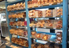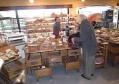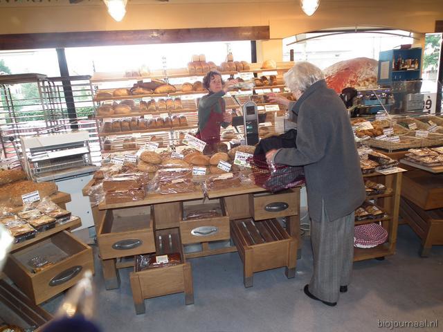 Ook de broodafdeling is in de vorig jaar vernieuwde winkel erg ruim. Ika help een klant.