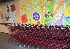 Vrolijke muurbekleding bij de uitgang.