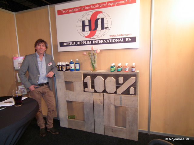 "Wilco Verkuil stond met de 100% bio-producten van Hortus Supplies International B.V. op de Bio Business. Hortus Supplies International is gespecialiseerd in gewasbeschermingsmiddelen en bodemverbeteraars en zijn hoofddealer van Ecoprotecta. "Met een 100% bio-product moet je hier gewoon bij zijn."