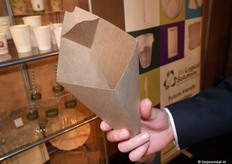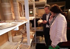 Stefan Kubicz van Denlop Natural Arts geeft toelichting op één van de speciale van hout geproduceerde verpakkingen.