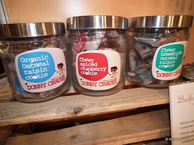 Hij heeft drie biologische 'cookies' in het assortiment.