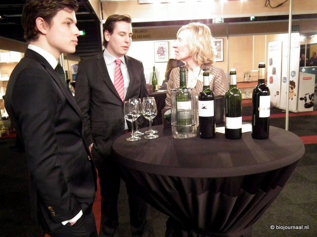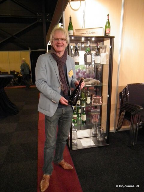 Peter Hekers van Pierre Ache Wijnen organiseerde diverse wijnproeverijen tijdens Bio Business. Hier toont hij de biologische wijn van het Limburgse Domein Aldenborgh (uit Eys).