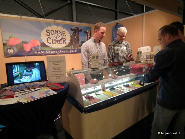 Gerard en Barend Mul lieten de Bio Business-bezoekers proeven van de biologische varianten van hun Sonneclaer-ijs.