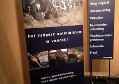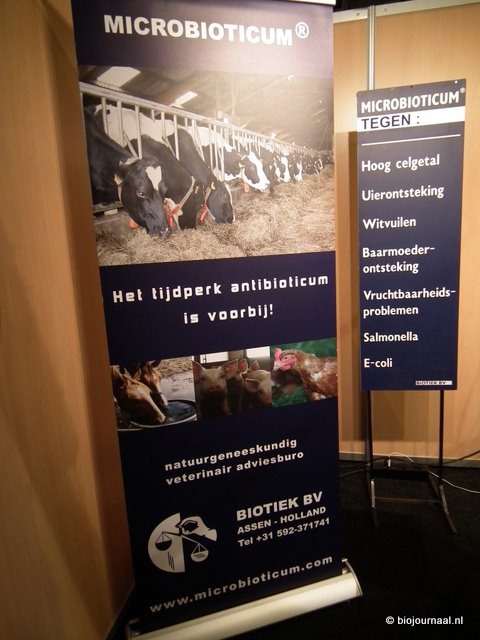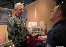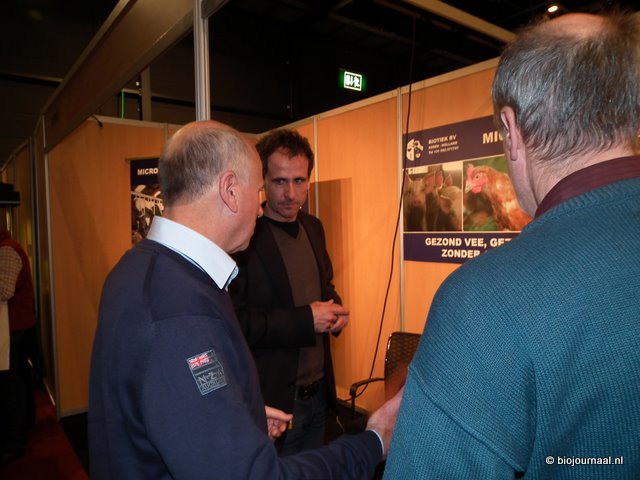 Mark Entius in de stand van Biotiek. Hij kon rekenen op veel belangstelling voor microbioticum.