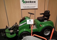 John Heckathorn achter de electrische kruiwagen Donkey.