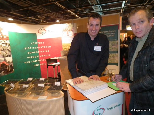 Pius Floris van Plant Health Care is zichtbaar blij met de positieve reacties op hun hoogwaardige compost en plantaardige meststof, speciaal bedoeld voor de biologische landbouw.