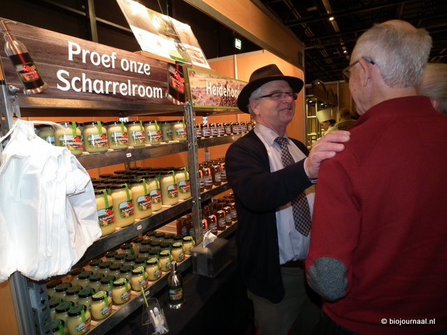 Albert Huibers van Gelderse Vallei liet proeven van hun scharrelroom en heidehoning.