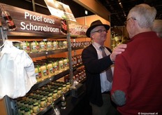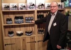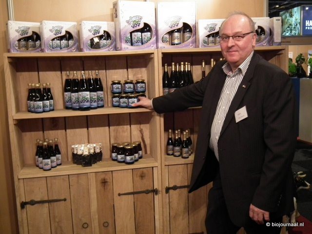 "Theo Douven met een overzicht van de producten van B-Berry. De duurzame blauwe bessen worden onder meer verwerkt tot sappen en jams. Ook zijn er gedurende het seizoen uiteraard volop verse bessen verkrijgbaar bij B-Berry. Het teeltbedrijf is duurzaam en Milieukeur-gecertificeerd en werkt bewust niet biologisch: "Ik maak volop gebruik van sluipwespen, lieveheersbeestjes en oorwormen. Niet alleen biologisch is duurzaam. Ik wil de risico's weg kunnen nemen en hoef bijna nooit te bestrijden."