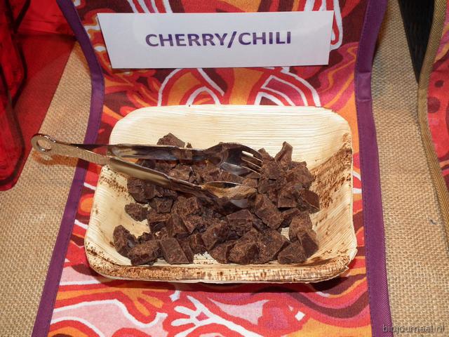 Zij lieten de bezoekers proeven van de nieuwste Lovechock-smaak: Cherry/Chili.