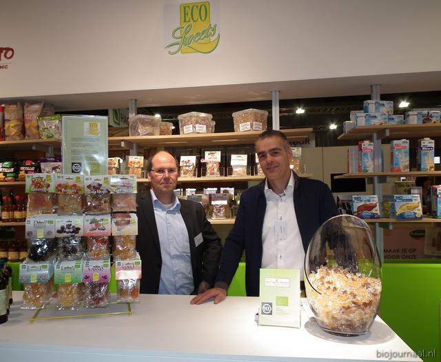 Fred van Tienen en Arnold Broek met het bio-snoepassortiment van The Organic Factory.
