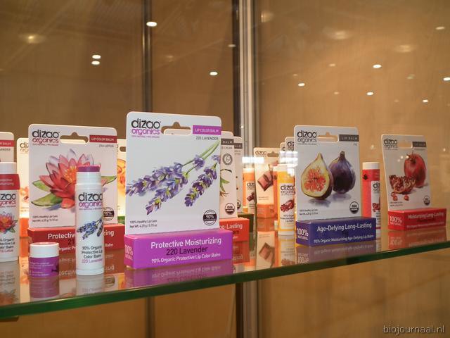 De kleurrijke verpakking van de lippenbalsem valt goed op. De producten zijn 95% USDA Organic-gecertificeerd.