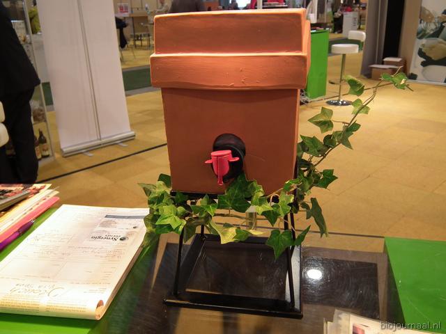 Dit is de BIB-Cooler van B-touch. In deze 'cooler' van terracotta blijven Bag in Box-dranken urenlang koel, zonder extra koelelementen te hoeven gebruiken.