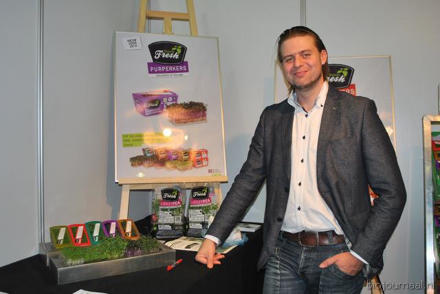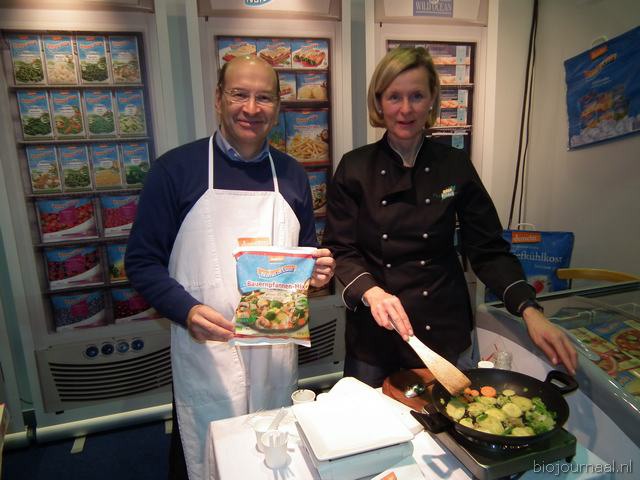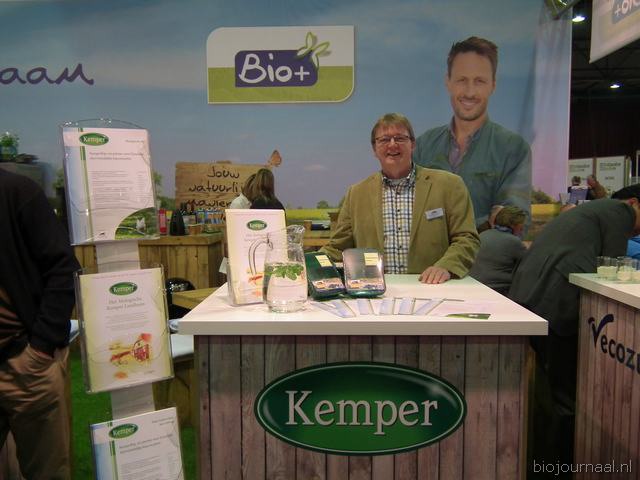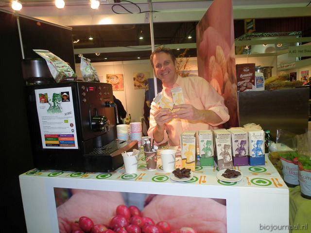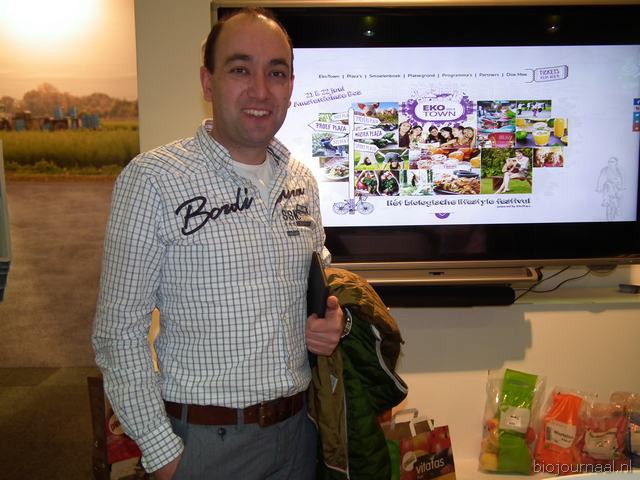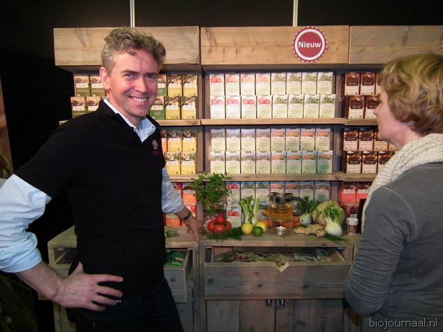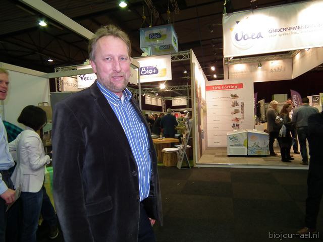 Arie Ermstrang van Baltussen Konservenfabriek. Dit is één van de licentiehouders van Bio+. Zij presenteerden zich gezamenlijk in één stand.