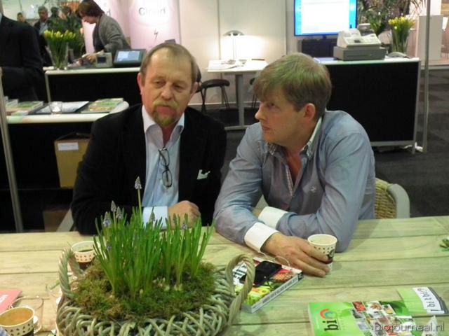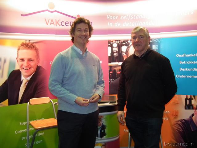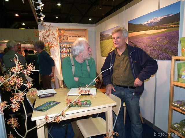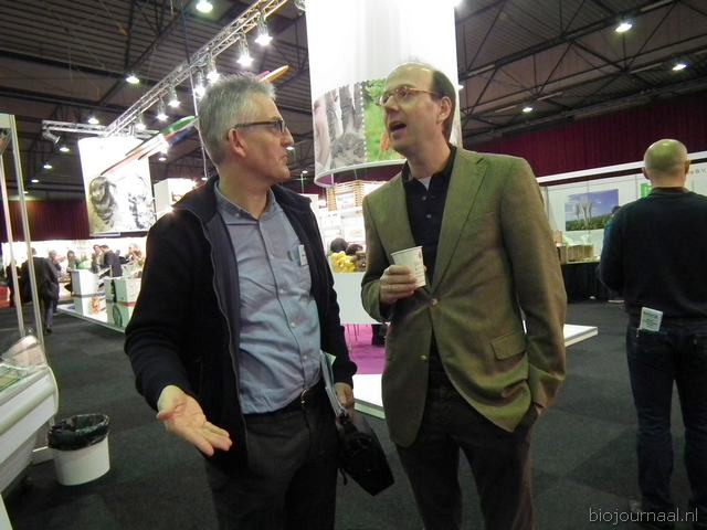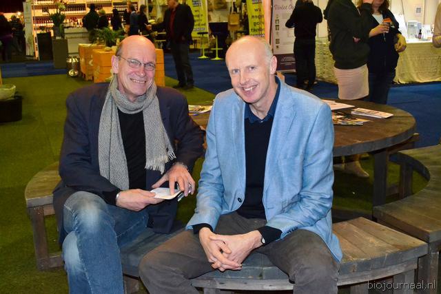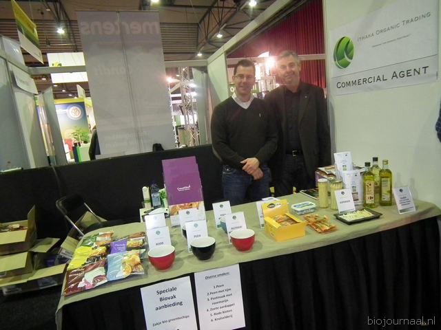 Johan Troost (links) heeft onlangs Ithaka Organic Trading opgericht. Hij zet zich in om in het buitenland geproduceerde biologische producten in Nederland te vermarkten. Hij komt ook graag in contact met biologische ondernemers die hun producten in het buitenland willen afzetten. Naast Johan staat Diego Garcia van de firma Jules Brochenin. Zijn producten worden door Ithaka Organic Trading in Nederland vermarkt.