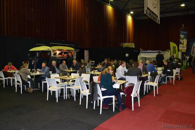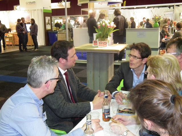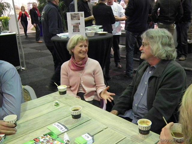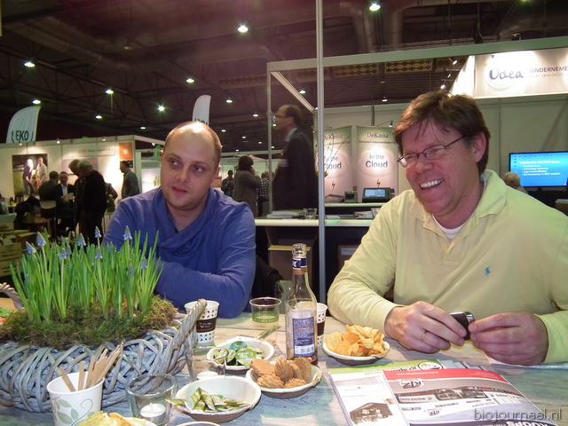 Estafette Odin had een gezellige huiskamersfeer gecreëerd. Links zit Bavo van den Idsert(directeur Bionext) te praten met Koos Bakker, directeur van Estafette Odin.
