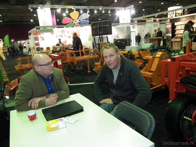 Robert Fakkert (rechts) in de stand van Fakkert Biologische Voeders.
