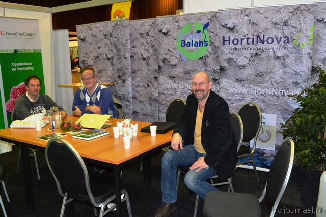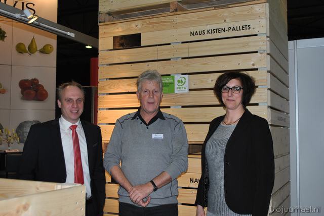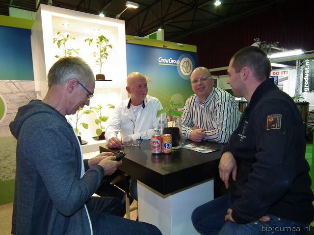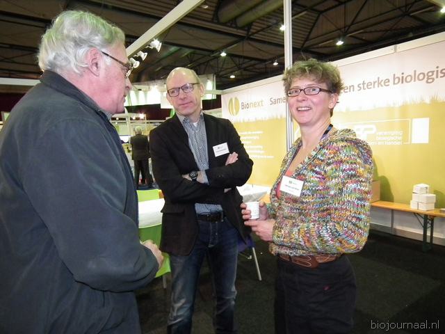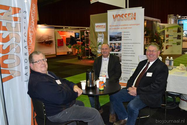 Siem van der Valk (Bioworld), Rudie Ensing (OTC) en Jan David Meuleman (Biobrass) op de stand bij OTC.