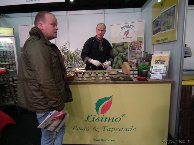 "Hester Groenen van Extract BV liet bezoekers proeven van de biologische pesto's en tapenades van Lisimo. "We zijn zo'n twintig jaar geleden begonnen met het produceren van deze producten op basis van verse kruiden. En sinds kort zijn we Skal-gecertificeerd en bieden we dus ook een biologische variant aan."