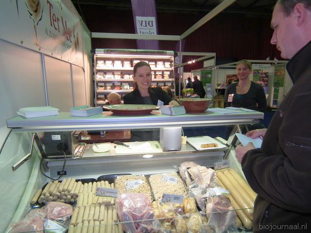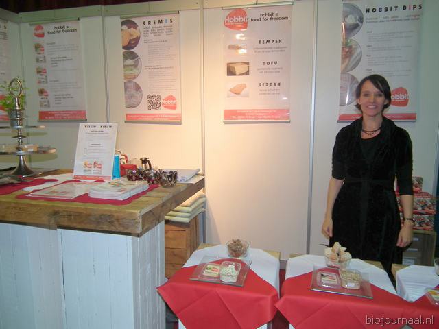 Ook Edith Gomes van De Hobbit had de reis van Maldegem naar Zwolle weer afgelegd om het ruime assortiment aan vleesvervangers aan de bezoekers te tonen.