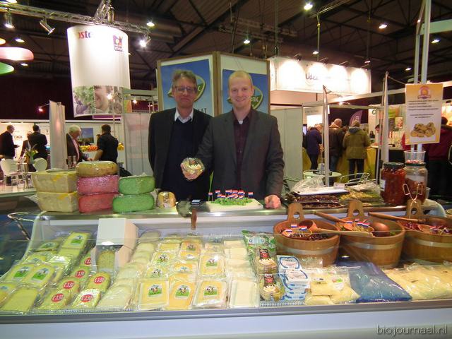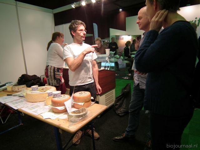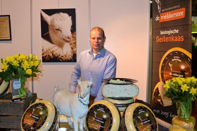 Piet den Hertog bij de geitenkazen van De Mèkkerstee. De Mèkkerstee eindigde op de tweede plaats in de verkiezing van de Ekoland Innovatieprijs.