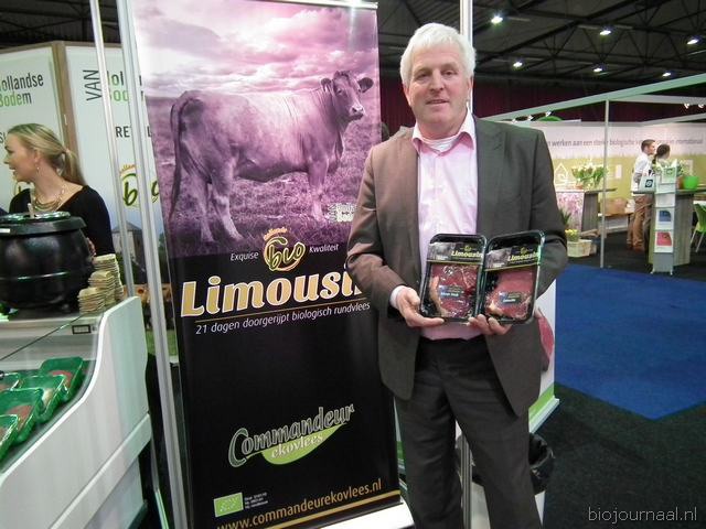 "Albert Roozendaal toont het 21 dagen gerijpt Limousin-vlees van Commandeur Ekovlees. "We laten dit vlees extra lang doorrijpen, wat het vlees nog malser maakt. In de verpakking wordt het vlees omsloten door skinpack, waardoor het langer houdbaar is."