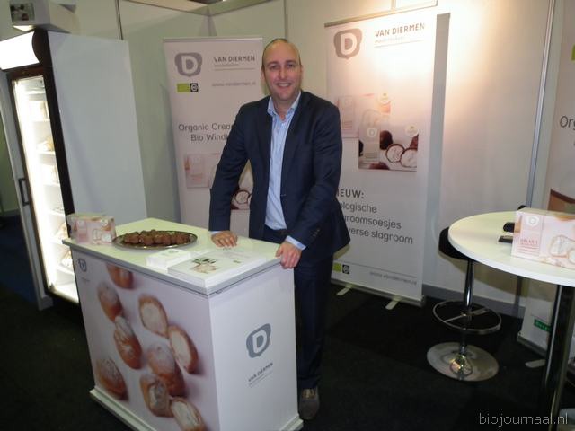 Jan Beekhuis kon de bezoekers van de BioVak alles vertellen over de biologische slagroomsoesjes van Van Diermen Masterbakers.
