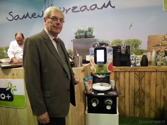 Walter Rompa van Four Seasons Food met de nieuwe soepautomaat van Bio+.