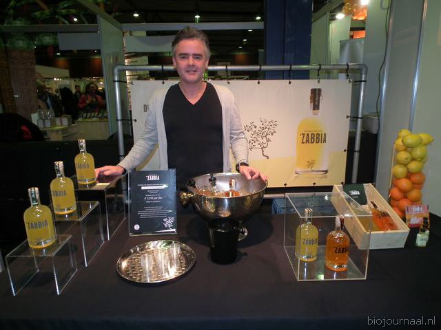 Bartel van Willigenburg van Di Zabbia maakte zijn debuut op de BioVak en liet veel bezoekers proeven van de biologische Limoncello en Orangecello.