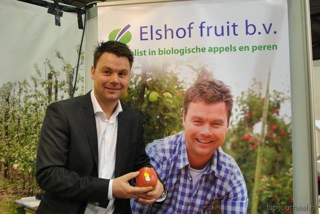 Robert Elshof met zijn beursprimeur de biologische lola appel.