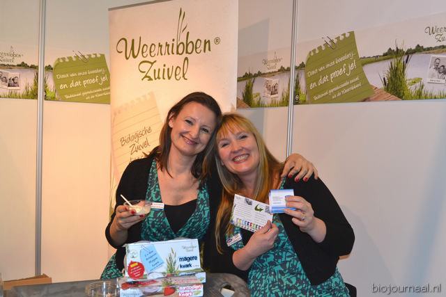 Rachel Dalebout en Connie Wilson van K.A. Havelaar & Zn. komen even wat lekkers proeven in de stand van Weerribben Zuivel