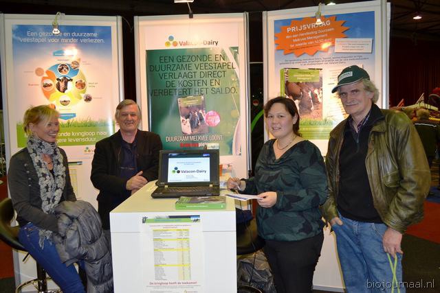 In het midden Willem van Laarhoven en Marjolein Feiken van Valacon-Dairy. Zij staan voor het verlengen van de levensduur van melkvee