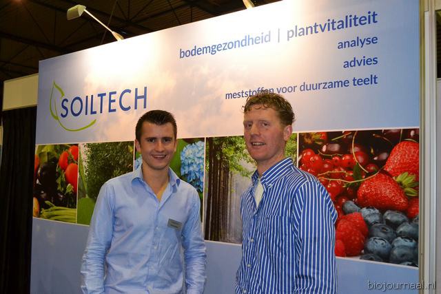 rechts Sjoerd Smits van HortiNova en Rene Jochems van Groeibalans, deelnemers van het Bodem & Bemesting Plein