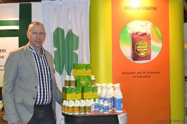Peter van der Woerdt van EM Agriton bij de Bokashi emmertjes, Wipe & Clean bodemverbeterende producten