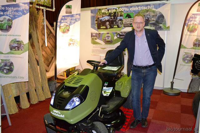Theo de Jong bij een FM-70 zitmaaier, 100% elecktrisch, een greep uit het assortiment van Frisian Motors