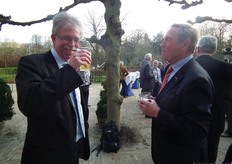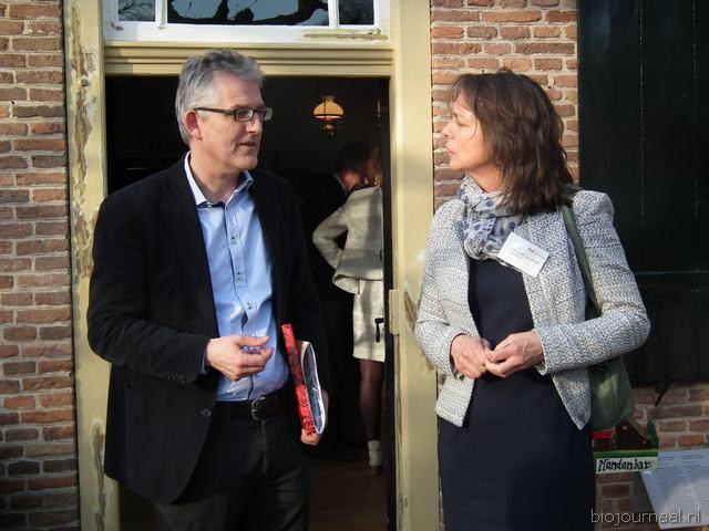 Het ministerie van Economische Zaken was goed vertegenwoordigd. Op deze foto: Kees Lever en Renze Brouwer. Renze is sinds kort actief als senior beleidsmedewerker biologische landbouw bij het ministerie.